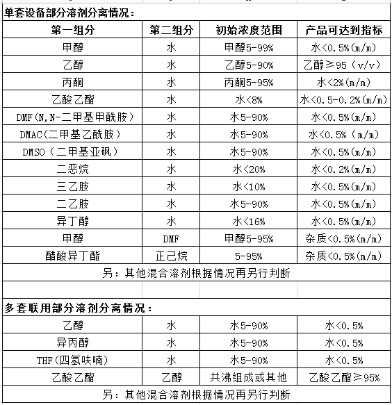 應(yīng)用于有機溶劑的回收及產(chǎn)品分離提純