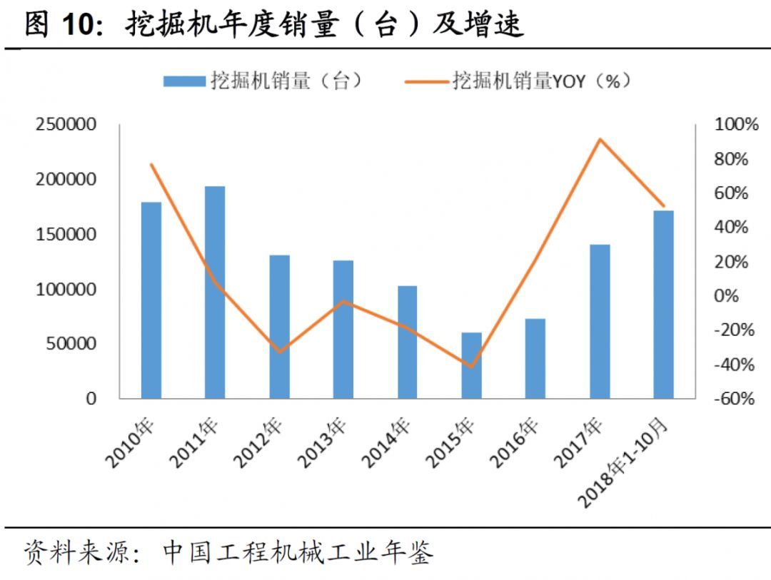 工程機(jī)械的液壓件市場目前仍以外資品牌為主,也一度成為主機(jī)廠擴(kuò)產(chǎn)的瓶頸所在。細(xì)分品類中挖機(jī)油缸已經(jīng)被恒立液壓為代表的國產(chǎn)廠商基本占領(lǐng),但是液壓泵、閥、馬達(dá)的進(jìn)口替代才開始起步。2017-2018 年這一波主機(jī)廠的生產(chǎn)熱潮無意中造就了國產(chǎn)品牌的市場突破,再次詮釋了“機(jī)會是留給有準(zhǔn)備的人” 這一哲學(xué)道理。即使2019 年主機(jī)廠增產(chǎn)進(jìn)度可能放緩,但是液壓件進(jìn)口替代的存量市場空間廣闊,國產(chǎn)恒立液壓就是代表品牌。