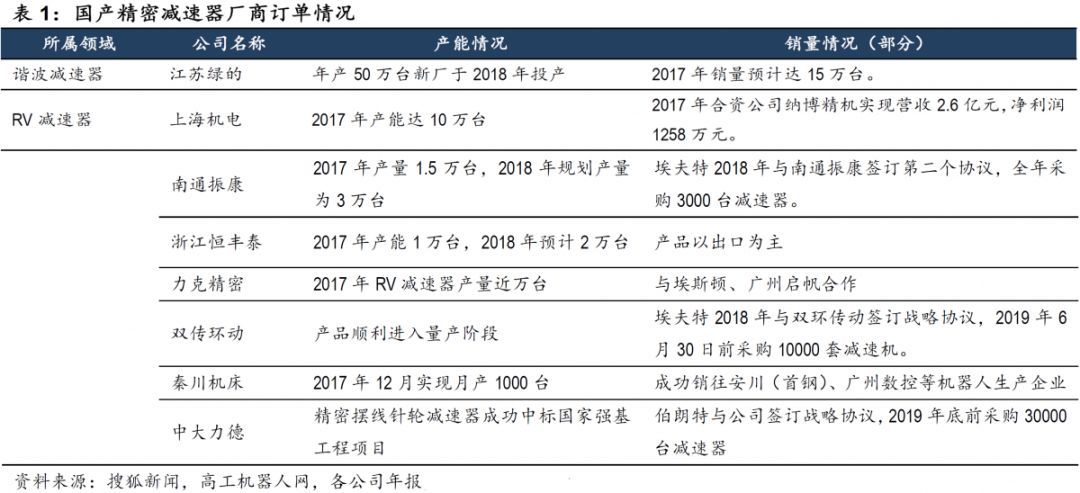 2017 年以來國產(chǎn)減速器廠商規(guī)模化訂單的涌現(xiàn)充分說明了國內(nèi)精密減速器公司的技術(shù)進(jìn)步,而與之對應(yīng)的是精密減速器供應(yīng)商的規(guī)?;a(chǎn)能建設(shè)緊鑼密鼓,因此預(yù)判精密減速器國產(chǎn)化進(jìn)程已經(jīng)達(dá)到“臨界點(diǎn)”,相關(guān)廠商將受益。